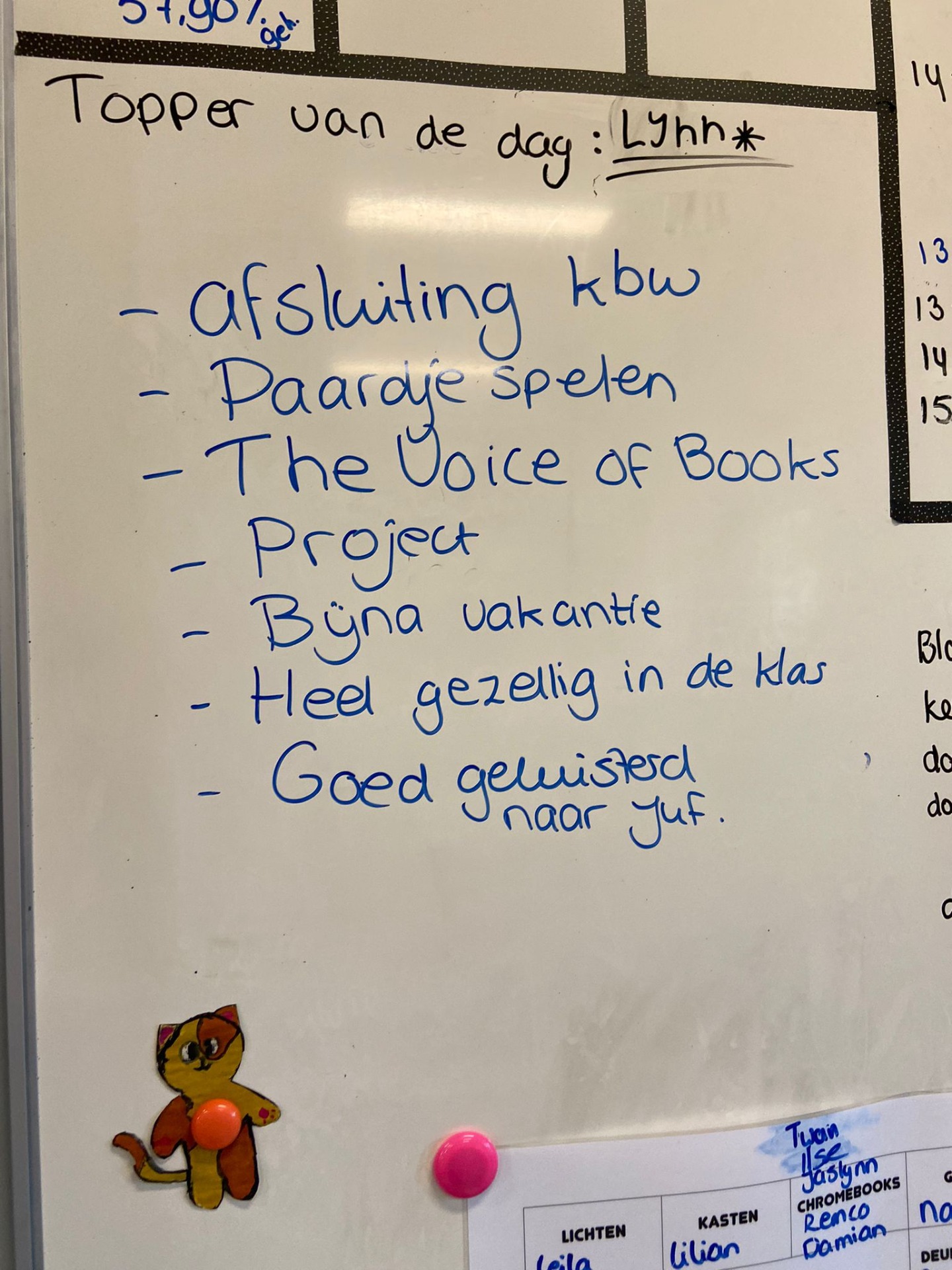 De inbreng van kinderen vind ik erg belangrijk. Samen zijn we de klas. Wanneer een kind met een idee bij mij komt, wil ik hier voor open staan.