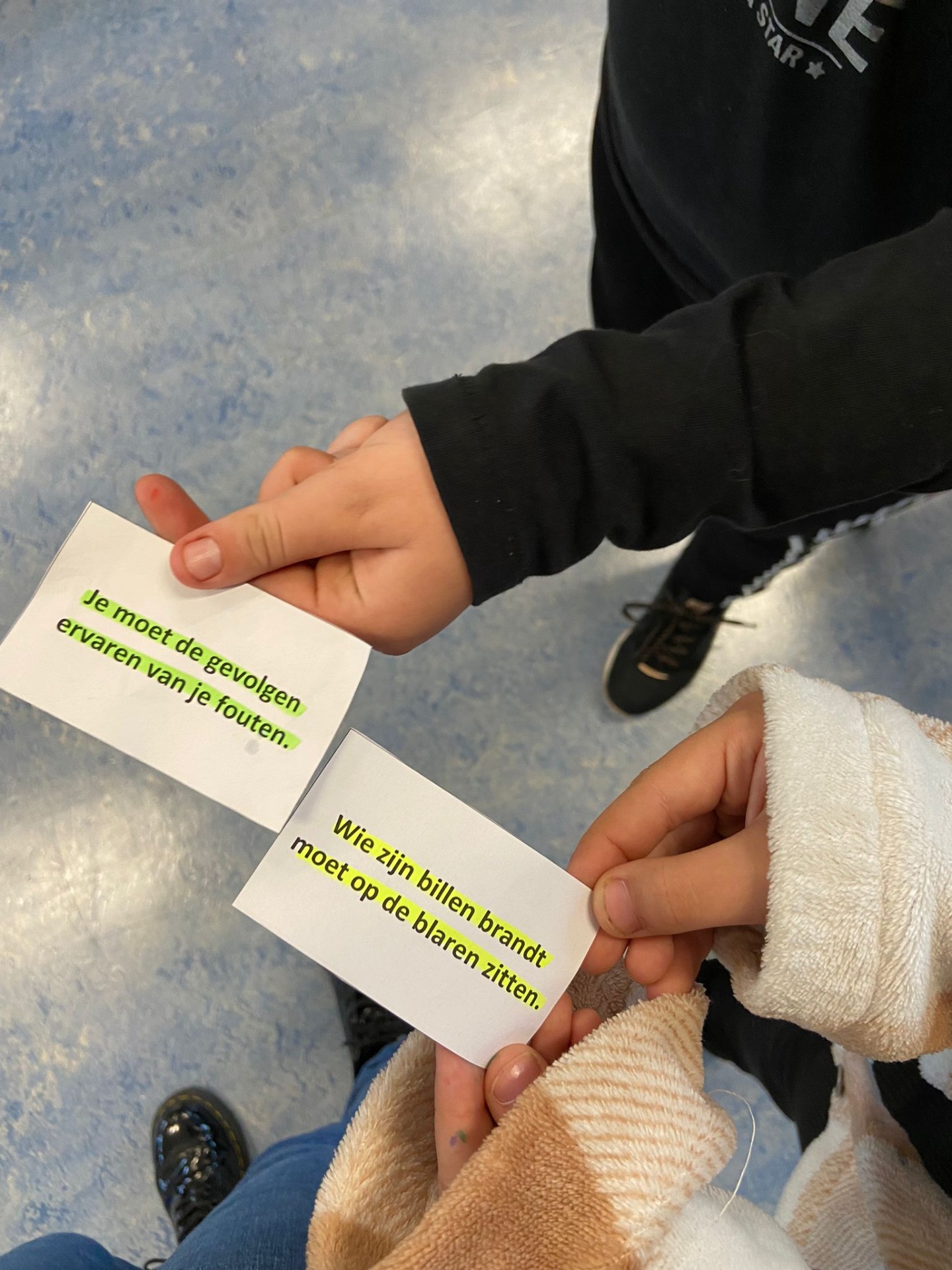 Ik ben een groot fan van (coöperatieve) werkvormen. Ik vond het daarom ook erg leuk om daar vanuit de vereniging een workshop over te krijgen (al moet ik zeggen dat ik al best veel wist). Tijdens deze workshop heb ik verschillende werkvormen gezien en uitgevoerd. In de klas heb ik dit proberen door te zetten. Ik merk dat het zoveel waardevoller is dan 'gewoon' de stof uit een boek leren. De kinderen worden bij deze werkvormen geactiveerd en kunnen eigenlijk niet niks doen. Een voorbeeld van een werkvorm staat hiernaast. Dit is de werkvorm mix en match. In dit geval met spreekwoorden. De een heeft een spreekwoord de ander een betekenis. Ga opzoek naar de juiste betekenis van het spreekwoord. De betrokkenheid is dan zeer hoog!